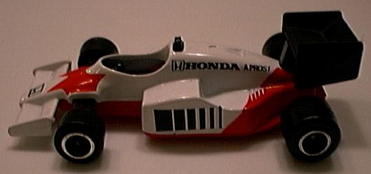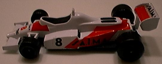 .![]() 1974 McLaren Indy Car and same car in 1976 colors by Johnny Lightning McLaren's Open-Wheel Racing Cars in Miniature By David Cook McLaren cars are very much in the sporting news lately, having won the Formula One drivers championship the last two years for Mika Hakkinen. The team's story begins of course with Bruce McLaren. A New Zealand junior champion, he was brought to England at a young age by Jack Brabham to partner him on the Cooper F1 team in 1959. Bruce took to top-level racing right away and still holds the record as the youngest-ever Grand Prix winner at 22 years old. After Brabham left to build his own cars, his young student continued on as number one driver for Cooper. But Bruce's ambitions were similar to Brabham's and he started McLaren Cars Ltd. in 1966. The first-ever McLaren F1 car was mostly an under-powered flop, but at least they were in the game. The example shown here, by Penny is a fairly good representation of the M2B but the giant rubber wheels seem out of proportion. While Formula One proved a tough nut to crack, the team was off to a great start in North America, winning the first of five Can-Am championships, 1967 through 1971. (See TofTC Nov. '99) Finally powered by Ford-Cosworth engines, the team won its first F1 races in 1968 and was in the hunt for the title. But Team McLaren's ambition and spirit were almost boundless and transcended the tragic death of its founder in a testing accident in 1970. Cars were constructed for an assault on the Indy 500, the first win coming in 1972. The Johnny Lightning car pictured here is a beautiful representation of an M16, the winner in 1974 and 1976 for the great Johnny Rutherford. Subsequent models raced at Indy through 1981. 1974 also saw the team's first F1 championship with Emerson Fittipaldi at the wheel of an M23 pictured here by Polistil. The M23 also carried James Hunt to the championship in 1976, after a titanic struggle with Niki Lauda and Ferrari. Hunt's car is also pictured here, again by Polistil. Check out the evolution of this model over two seasons. The M23 is one of the all-time great F1 cars, with eighteen wins and two championships from 1973 through 1976. In the hyper-competitive world of F1, however, no one stays on top for long. The team's next model, the M26 pictured here by Tomica, scored only three wins in 1977. Left behind by Ferrari 12-cylinder power and Lotus ground-effects technology, the team went into decline. To turn things around, McLaren's primary sponsor, Marlboro, forced a merger with the new-blood team Project Four. This new partnership was re-named McLaren International and cars were called MP4s. A long trek back to the front of the grid began. One of the first MP4s is pictured here, again by Polistil. The team's new designer, John Barnard, pioneered the use of carbon-fiber chassis. With a design team in place, new driving talent was added: an "un-retired" Niki Lauda in 1982 and Alain Prost in 1984. A new turbo-charged engine especially designed by Porsche with TAG money brought McLaren back to the top: a world championship for Lauda in 1984, then two in a row for Prost in 1985 and 1986. The Majorette model pictured here is a good example of the cars from these years. When the Porsche engines reached the end of their competitive life, McLaren switched to Honda power and added the super-talented Ayrton Senna to partner Prost. It was the greatest possible combination: the two best drivers and the most powerful engines meant that McLaren steamrollered its opposition four years in a row, 1988 (when McLarens won every race but one) through 1991. This is the time when Senna's god-like reputation was made. But the team wasn't big enough to contain these two giant egos. Prost left for Ferrari after winning the championship in 1989. The Tomica model shown here is representative of the cars from this era. Honda chose to withdraw from racing after 1992 and McLaren fell back on Ford power. Michael Andretti was brought in to partner Senna. The great Brazilian refused to sign a contract for the season, opting for a race-to-race deal demanding a cool $1 million per event! The MP4/8 pictured here by Minichamps won a few races but could not match its Renault-powered competitor, Williams. The team drifted the next few years in search of competitive power, trying first Peugeot, then Illmor-Mercedes engines. This combination clicked, and McLaren came on strong again, winning driver's championships for Mika Hakkinen in 1998 and 1999. The beautiful Siku model shown here is actually a very good representation of today's McLarens but with a generic paint job to avoid any licensing problems. Under present managing director Ron Dennis, McLaren looks set to remain