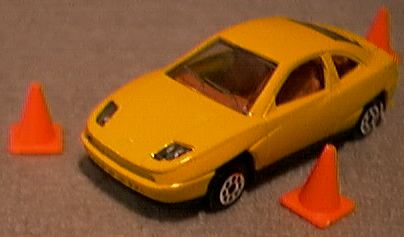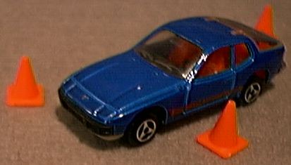 ![]() Built for the road test, Majorette's Supers (1996 Mustang Convertible) come with cones. The Little Cars We Love to Test Drive Story by Wood Smythe Images by Doug Breithaupt Do you remember the first time you opened up a newly purchased 1/60-scale vehicle and playfully rolled it across the hard, wooden floor? Perhaps it was to check if the wheels turned properly - or simply to test the type of suspension that the manufacturer had installed as "standard" equipment? Well, if you are like me, the emotional aspect of driving different cars (I rent frequently) compares favorably to that first experience. It all started when this one particular grade-school friend and I used to hang out where the Taconic State Parkway exit ramps spilled out onto Route 55 in the Town of LaGrange (NY). Blistering summer heat had caused much of the flat pavement to buckle in and around the many potholes and created a veritable highway hazard for about thirty yards. From our shaded vantage point, we would watch in amazement for hours as cars navigated the bumps. Tires bounding up and down would thrust lightweight vehicles to and fro. We, however, were more fascinated at the sight of heavier car bodies hovering relatively steady as their tires pulsated vigorously underneath - thump putta rhump, thump putta rhump. Back at home and unlike most of my childhood friends, I was not one to test straight-ahead rolling per se of my toy cars because it risked chipping the paint. Instead, I would assemble "test tracks" on which to analyze a vehicle's smoothness or its ability to maneuver around corners. So, put your hands firmly on the steering wheel - er, roof - and let's go on a test drive. I can remember the first cars I owned that incorporated "active" suspensions. Only the Majorette-brand vehicles floated over our rugged flagstone patio much like a boat glides over water. What fun! Cars without suspensions never performed with any dignity. From that moment on all my scaled vehicles would have to emulate the lofty Majorette standard. Few did. At the time, some major 1/60-scale toy car-makers (and most today) made no attempt to provide suspensions on their products. What a shame. Hot Wheels, among others, usually had its flexible wire axles act as the suspension system. Apart from being quite sturdy, that primitive mechanism never really satisfied me, the thrill-seeking "driver." More effective was the type utilizing a single, flat metal (or plastic) spring, which spanned both axles and allowed only their upward movement. Used by Matchbox, Tomica, Yatming, and others, some early examples of this innovation were "weak and meek," producing very poor test results. For instance, I used to garage my Matchbox Lincoln Continental (#31-C1) upside-down for fear the suspension would cave in from the mere weight of the vehicle itself. Almost all toy cars marketed by Tomica under the name "Pocket Cars" in the late seventies and eighties sported a reasonable suspension. However, for a long time its Honda Civic GL (#63) was the only one of any brand to compete favorably with the Majorettes in my pothole tests. My test track consisted of a 24-inch by 6-inch piece of Bainbridge cardboard, which had a natural roughness to its surface. I cut out several one inch by one-quarter inch rectangles to act as potholes. Then, I pasted the cutout pieces onto the surface to act as bumps. Voila! By alternating these hazards on the board, my contrived surface simulated a road (much like Route 55) in need of repair and similarly taxed the tiny suspension systems. By placing a small plastic item on the roof or hood of the vehicle and keeping the timing of the push from Point "A" to Point "B" on the track much the same for each swipe, I could test the effectiveness of each suspension. Of course, slant of the roof and amount of live load (okay, pressure with my fingers on the roof) applied during the test would alter the data. So, I did trial after trial and accumulated average test statistics. Move over Tom Cahill. Then came my new Ferrari Testarossa by Road Champs which readily outscored all others. Sometimes the plastic test piece did not vibrate off its roof at all through an entire swipe of the test track! (A feat equaled only years later by Buby's Fuego Coupe (#1240.) Strange that a sporty car would ride that much smoother than a Rolls Royce, but such is the world at 1/60-scale. Another test I performed regularly consisted of a serpentine slalom (without cones) for judging emergency handling. It was simply a piece of cardboard shaped like a snake. One version had its curves banked, but I never had time to perfect it after it broke to pieces during rigorous testing. Anyway, tests done on the flat track returned sufficiently honest results. Apparently, varying the pressure significantly modified the outcome through the slalom. Yatming's Datsun 280Z-T (#1062) would handle best when lightly loaded but deteriorated considerably as more "passengers and baggage" (yeah, okay, thumb pressure) were added. Surprisingly, Matchbox made an outstanding "Superfast" 1968 Mercury Police Car (which shared the same chassis with the Mercury station wagon, # 55 and 73). It's still fun to put through its paces because mine is engineered with just the right spring calibration. Majorette cars exhibited some very different maneuvering capabilities altogether. If you put pressure to, say, the left side during a right turn, the wheels steered into the turn, in effect, making the negotiation easier. Moreover, both front and rear axles would cant slightly to help articulate the turn. For some cars it worked by applying the pressure to the opposite side, hence, over- and under-steer! This dynamic on some Majorette cars was helpful in making them champions of both the slalom and the pothole trials. To varying degrees, the following displayed proficient characteristics: Ford Thunderbird (#217), Peugeot 604 (#238), Porsche 924 (#247), Saab Turbo (#284), Mustang S.V.O. (#220), an