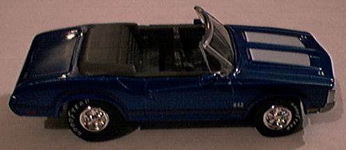 The 1969 Chevrolet Camaro SS Convertible is an earlier Johnny Lightning casting and not as accurate as newer offerings. The lowered top seems much too large. The 1970 Oldsmobile 442 W30 Convertible is also an early casting but with better lines. The real car featured a 455, high-compression V8. The 442 was for four-speed clutch, four-barrel carb, dual exhaust. |