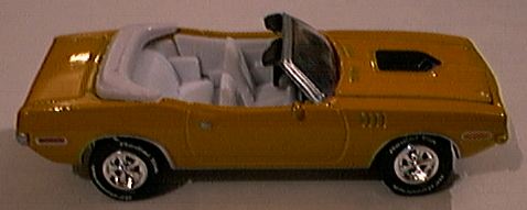 The 1971 Plymouth Hemi Cuda Convertible is a very rare car with only two being produced. One recently sold for $425,000. The toy car represents the automotive star of the Nash Bridges TV show and is a beautiful diecast model. The 1970 Dodge Challenger was the 1970 Indy Pace Car and has the dubious distinction of being the only pace car to be involved in an accident during the race. |