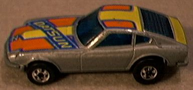 original #44-A casting that was based on the Z-432. Although it was not be a long-lived diecast manufacturer, Hong Kong's Kidco managed to bring a number of unique models to the marketplace during its brief tenure upon the toy shop shelves. One such model was a very handsome and accurate miniature of the American-market 280Z which captured the car's essence almost perfectly. While opening doors and hoods are probably the most common operating features found on diecast cars, Kidco opted to equip its Z-car model with an opening rear hatch--a rarity in small scale Zs. While the wheels left something to be desired, the Kidco 280Z succeeded in getting all the details that are frequently neglected (such as marker lights) just right. Playart, another, somewhat more successful Hong Kong-based toy maker, also offered an early Z-car model labeled in the international-market nomenclature of Datsun 240Z. As was typical for Playart, their Fairlady Z was well-proportioned and nearly as svelte as the real car. On the down side, the model was somewhat static with no opening features, often carried ugly tampos and, except on early production versions, usually wore grossly oversized wheels with five rather loud spokes in chrome. Of course, its almost perfect body shape nearly compensates for these minor sins. Perhaps somewhat unexpectedly, Singapore brought the world yet one more brand of rare and mysterious diecast miniatures known as Mandarin. Although many of its models were rather crude and lackluster, Mandarin's Z-car was probably one of the best miniatures the company offered. Obviously inspired by Tomica's outstanding work on its Z-432 model, Mandarin's Z-car had no opening features and suffered from poor paint quality yet its overall proportions were quite pleasing and accurate. While it is always interesting to speculate about what could have been, it's not too difficult to fathom that if this model had reached a wider audience during the height of the Z-car rage, Mandarin might well still be in business today. Known for its fanciful yet well-made diecast toys, Mattel's Hot Wheels offered a refreshingly accurate model of the Datsun 240Z that was more a scale miniature than their usual cartoonish impressions of real cars. Although it went without any opening features or other gimmicks, "Z-Whiz", as the model was known, was a tough little toy with a lot of play value. Except for hideous tampos which never matched (much less complemented) the body color, Hot Wheels' Datsun was one of its best models during the mid-1970s. For now, we will conclude our survey of Nissan's sports car. Somewhat of an instant classic, the original Z-car has finally begun to receive the recognition it has for so long deserved. Yet it always garnered a lot of respect among diecast toy manufacturers. In the future, we will take a look at the less sporting and more gran turismo-oriented ZX cars from 1978 onward. |