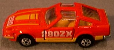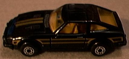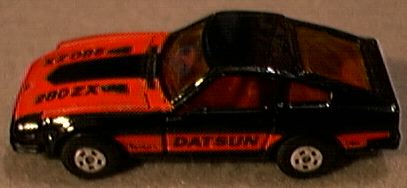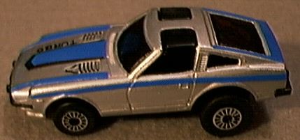 The less-than Fairlady: Nissan's 280ZX The concept behind and the execution of the new ZX was decidedly different from that of the original Z-car platform. Nissan knew that the market had changed dramatically since the 240Z was introduced (after all, the original Z was the car responsible for all the change) and that the competition was readily catching up to its then current 260 and 280 models. Furthermore, as the base price of the Z car increased, the average age of its buyers did likewise; obviously, this logically meant that the pure, uncompromised sports car approach was probably a bit off target for customers who were now married and had children. In the end, Nissan boldly moved the Z's replacement away from its past and into a future that would center around the new ZX being a luxurious gran turismo. At first glance, the ZX didn't appear all that strikingly different from its predecessor as Nissan deliberately retained a considerable number of the earlier Z's trademark styling cues. Nevertheless, the ZX was a completely new and much larger chassis that dispensed with the original Z's rear Chapman struts in favor of a more conventional semi-trailing arm rear suspension system. The interior layout also borrowed heavily from the "look" established by the earlier Z yet now featured considerably more expensive trimmings and a myriad of gadgets that would have made James Bond envious. While braking was up rated to four-wheel discs all around, the drive train remained, somewhat curiously, the same 2.8 litre straight six with five-speed gearbox as that found in the previous 280Z. Needless to say, performance of the old six (an ancestor of which had once propelled the 240Z so quickly) suffered heavily due to the new car's additional weight. Nonetheless, the new car was still seen as a desirable package by many and sales started off and remained strong throughout its production life. However, the 280ZX was not a static creation and by 1979, Nissan addressed the complaints of the car's lack of power by installing a turbocharger that largely restored its reputation. Yet the 280ZX was not to enjoy as long of a production life as its predecessor and after six years and several sales records, the car was gave way to the entirely new 300ZX. The 300ZX was the first Z car to carry a V6 engine and to most, it signaled with its ugly (and quickly dated) styling the end of the classic Z car era. Not surprisingly and especially when considering its sales success, the 280ZX became an extremely popular subject in the world of diecast cars with many companies producing miniatures. In fact, it's somewhat more interesting to note which model car companies didn't make ZXs than to seek out those that did. With that in mind, let's survey the ZX in 1:64 scale. Although Tomica has often been overlooked by collectors outside of the Orient due to it's focus on Japanese cars, certain models it has produced are widely coveted. Among Tomy's most popular miniatures are any of the Nissan Z cars, including its outstanding 280ZX. Perhaps the most accurate small scale model of this car ever produced, the Tomica ZX has opening doors, perfectly sized wheels and, as with all Tomicas, excellent paint work. While collectors quickly grab up the standard road-going version of this model, a rarer variation wearing a roof-mounted light bar and decorated in the standard Japanese police livery of black and white occasionally turns up to add a little more variety to a ZX collection. By the late 1970s, skyrocketing production costs in England were sinking Matchbox's parent company of Lesney into a morass financial difficulty that eventually forced it to commission Universal to produce several of its models in Hong Kong. Among the Hong Kong Matchbox cars was a set of four Japanese sporting cars that included the new 280ZX from Nissan. The model captured the low-slung look of the ZX quite well and even the model's nose (a difficult aspect of the car to recreate in miniature) was almost perfect. Featuring opening doors and a nicely detailed interior, the model's quality of construction and paint work easily rivaled that of English-made Matchboxes and perhaps even exceeded them. In an interesting twist of fate, Universal acquired the troubled Lesney's assets and completely took over the production of Matchbox toys. In 1983, an entirely new casting of the 280ZX appeared under the Matchbox name and while it may superficially look the same as the old casting, this new model was based on the 280ZX 2+2 as opposed to the earlier 2-seater. As with its predecessor, the new model featured opening doors yet was unfortunately plagued by a variety of accuracy problems including oversized wheels, overly wide tracks and a high-off-the-ground stance that would have been more appropriate for a rally car. Also suffering from the same "rally car" affliction is Yatming's 280ZX. Otherwise a nice model with a well-sculpted interior and opening doors, this model is often found in garish paint schemes that do little to enhance the miniature's generally good lines. Earlier versions seem to have the most reserved paint work than later versions; however, later versions did acquire smaller diameter wheels which help to somewhat alleviate the "jacked up" appearance of the earlier models. Usually associated with the Walgreens drugstore chain they are sold at, the Speed Wheels brand consists of mostly pirated castings based on a number of other manufacturer's models. However, some Speed Wheels castings appear to be made using dies retired by other companies. One such example of this is Speed Wheels' 280ZX which seems to be a discarded Yatming (Editor's note: Perhaps a Tomica copy?). A popular option on the 280ZX was the "T-Top" roof with its two removable glass panels above the driver's and passenger's seats. With so many U.S.-bound ZXs being equipped with the T-Top, it only seems appropriate that two U.S.-based toy makers would offer models of the T-Top ZX. Often paid