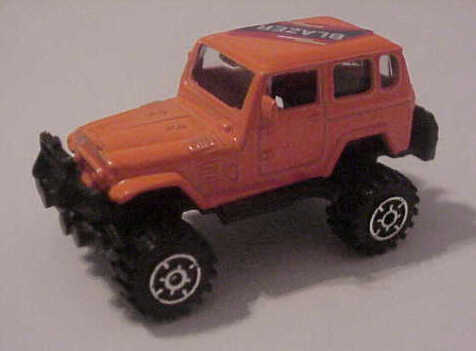 by Brian Willoughby images by Brian Willoughby and Doug Breithaupt Although the Americans invented the sport utility vehicle with the original Willys Jeep and the British soon thereafter developed the "high end" of the market sector with the Land-Rover (which, of course, is favored by the Queen herself), the Japanese saw a marketplace with plenty of growth potential. First gaining popularity with farmers and in areas with underdeveloped road networks, four-wheel drive "field cars" somehow became fashionable accessories for city dwellers. In the meantime, the Japanese had introduced a variety of quality engineered and made vehicles that were price at levels that allowed them to conquer the burgeoning market and eventually surpass their American and British inspirations in sales. Along the way, several diecast manufacturers recorded the history of these unique vehicles in miniature. With its ancestors first appearing during the early 1950s, the venerable Toyota Land Cruiser has been around almost as long as the two vehicles that were its inspiration: the Willys Jeep and the British Land-Rover. Although the Land Cruiser was largely a slight re-interpretation of the basic four-wheel-drive field car platform, it was, unlike later Mitsubishi products, a completely original (albeit obviously pirated) design. Styling was more Jeep-like in its execution; however, mechanically there was a good deal of similarity to Land-Rovers. Well made and engineered, the Land Cruiser soon began appearing in markets that had formerly been controlled by either Jeep or Land-Rover and soon after proving to buyers that they were every bit the equal to their American and British rivals, these modestly priced Japanese 4x4s began to outsell the established makes. In the process, the Toyota FJs (gasoline powered) and BJs (diesel powered) became hard-working legends before being moved ever more up-market. With their popularity, it was only to be expected that diecast producers would provide collectors with a wide variety of miniature Land Cruisers. Of the many miniature Land Cruisers, Tomica's accurate model stands alone as probably the best small-scale diecast ever made of this vehicle. Still in limited production today, Tomica's #2-B continues to be a favorite among collectors. In fact, it is probably in the highest demand of any Tomica model at the moment, thanks in large part to the current popularity of sport utility vehicles. Featuring opening doors, this model has been offered in a wide array of paint schemes and variations including several different wheel types, versions with and without a light bar on the roof and a Japanese road service version with a folding sign on the roof that was assigned its own unique model number: #76-B. Majorette of France also offered a Land Cruiser that makes a strong argument for "what might have been". Produced in standard wheel and "bigfoot" versions, this model has frequently appeared in less than agreeable colors (such as a neon green) and has often been festooned with tacky tampos of lions. Sitting too low on its standard suspension and ridiculously high with the "bigfoot" wheels, this model also features a plastic opening rear hatch that has a tendency to break off when one attempts to open it. It's truly a shame that Majorette never got this model quite "right" since the basic casting is both accurate and nicely detailed. A generic brand found in dime stores, Pioneer's Land Cruiser is a somewhat rare find for completists. Another "bigfoot" model, the body casting is generally correct and coherent (although the roof could use a "lip" around it) and even shows minor styling cues such as the louvers and vents on the front fenders that are such a Land Cruiser trademark. Painted in garish colors, the model pictured in this article originally wore purple decals with the name "Blazer" emblazoned upon them until the author removed them and found a much more pleasant model beneath. Perhaps General Motors' Chevrolet Division would protest if it knew about this apparently unauthorized use of one of its product names on a model of a Japanese off-roader. Another of Toyota's notable vehicles is the Hilux pickup (sold under the name Tacoma in the U.S.) For years, these robust little pickups have been proving their worth by tackling some of the harshest jobs and climates the world has to offer. Although available in a two-wheel drive version, four-wheel drive is an extremely popular option and several models of trucks so equipped have appeared over the years. Tomica's miniature of the 4x4 Hilux is yet another of Tomica's winners. Featuring opening doors and enough color variations to match almost any one available from the factory, the only real fault with this model is its lack of a rear window in the cab. Majorette's Hilux is definitely a runner-up to Tomica's: its appearance is spoiled by "bigfoot" wheels yet it does offer a couple of unique design elements such as fender-mounted rearview mirrors (as formerly required by law in Japan) and an opening hood. Color choices are not always the best, though enough different variations have appeared that there ought to be one that most collectors will be willing to live with. Hot Wheels' recently released Tacoma model is based on the 1999 Pikes Peak competition version. Although an accurate model, it is ruined by golden lace wheels and it is unfortunately becoming more and more difficult to find. It will interesting to see what the future will hold for this model as there aren't many manners in which to redecorate it that won't look ridiculous. Previously, Hot Wheels also issued the Toyota Celica all-wheel drive Pikes Peak winner from 1998. Based on the Hilux chassis, the Fourunner (or as it is sold outside of the U.S., the "Hilux Surf") has been an immensely well-received alternative to the considerably more expensive Land Cruiser Station Wagons. Once more, Tomica has felt it necessary to best everyone else by producing what is simply the best 