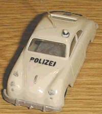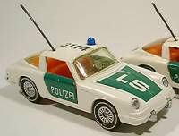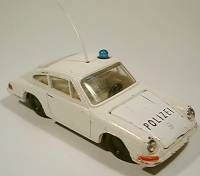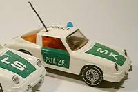 The people working for the German motorway patrol are probably some of the luckiest law enforcement officers alive. And who wouldn't be when they got to drive a Porsche at high speed through regular traffic for a day-time job? Well trained and very aware of the limits of their equipment these men are a sight to see racing over the autobahn for those that are innocent and a pain in the behind for getaway-car drivers. Siku did quite a number of cars in the colors of their nations' police force, but none are as interesting as the Porsche, which has now reached it's fifth generation with the 1999 issue of the 911 Carrera. But lets start at the beginning... 1: Porsche 356 Modelled after the 1959 Porsche 356 B Siku issued their first police Porsche from 1961 to 1964. The model was completely plastic and designated V160. Painted cream white with the word 'polizei' stuck on as a black decal there was no doubt about what this model represented. To make the picture complete there were a transparent antenna and a blue plastic rotating light glued to the roof and a small loudspeaker on the right front fender. Although this model could not match the originals' 75 horsepower engine which allowed it to get speeds up to 175 km/h it still caught many 'bad guys' in the rooms of little children. 2: Porsche 901 The second Porsche patrol car was the 901. While the real Porsche 901 was presented to the world in 1963 at a motor show in Frankfurt Siku did not let time go to waste and released both a regular as well as a patrol car version in 1964. Produced in the zinc die-cast V series as V235 this model was available from 1964 to 1970 in both cream and clear white. The model with its' gem-cut glass headlights and opening trunk (in the nose!) was very realistic. This time the word 'polizei' was in print on the nose and the turn signals and taillights were painted. The antenna and rotating light were not forgotten, but the speaker disappeared. 3: Porsche 911e While Porsche changed the 901 to 911 and added the now famous air-cooled 2 litre boxer engine police enthusiasts had to wait until 1978 for the next Porsche to appear. After Siku had produced the Ford Capri 1700 GT patrol car from 1971 to 1978 and changed from V to 1000-series the next Porsche patrol car was based on the Porsche 911E Targa. It was definitely a long wait because the regular model was released as early as 1970. The 911E Targa, a Cabriolet with a permanent part of the roof functioning as roll bar, was released in 1978 as #1316 and available till 1988. Both as a model and on the streets this Porsche was extremely successful. With almost 160 hp produced by the 2 litre boxer this car gave the 'bad guys' the boot. Again the model is rich in detail with, now black, antenna and rotating light. This is also the first Porsche that introduces the now familiar mint green in the colors of the German motorway patrol. Again available in clear or cream white they also had markings printed on the nose ('LS' or 'MK') and a number on the roof. The print 'polizei' was now on the opening doors, in white on green. Special about this model is that it was also produced in cream white with bright pink and the markings of the Dutch 'Rijkspolitie' on it. The Dutch patrolmen were less lucky than their german collegues because they drove their 911e's with the targa roof permanently off, rain or shine! I remember seeing them as a kid, with thick fur-lined leather coats and football-shaped helmets... 4: Porsche 911 Turbo (930) Just when things couldn't get more brutal the German police force introduced