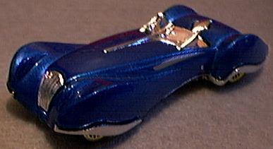 the motorcar. While most toy cars simply reflect existing models of production cars, one company has consistently offered something more. While Hot Wheels may not be the most accurate or offer the best detail, some of the most creative small-scale diecast cars have come from Mattel. Over the years, Hot Wheels has produced an incredible variety of toy cars and continues to do so. Three recent models provided the motivation for this story. Each seemed to represent a school of automotive design but at the same time was not an example of a real or production car. Whether pure fantasy or based on dream-car designs, these models provided an icon of the design extremes. As these new models represented the 1930's, 50's and 60's, it only remained to select like models for the 1970's, 80's and 90's. In the 1930's, Paris was the center of automotive design and the custom bodied Delage, Delahye or even Dusenberg was the epitome of style. Hot Wheels' Phantastique takes the sweeping art deco lines to an extreme that could have come from the design house of Figoni and Falashi. All the styling cues are here. Hidden headlights, covered wheels, chromed rocker panels and the raked windshield all make this a perfect icon of style from the 1930's. If the car representing the 1950's looks familiar, that's because it incorporates several cars into one. Produced by Hot Wheels as the car from Toy Story 2, this is a perfect icon for the age. The nose is 1957 Lincoln, the tail is 1960 Cadillac and the sides are 1957 Ford. The two-tone is perfect in turquoise and white. This is a very well-done model for Hot Wheels and to date, has only been offered in the Toy Story 2 gift pack. For the 1960's, the rakish Thomassima III is a perfect icon. On the base, it reads 'designed by Tom Meade', the first time I have seen a designer credited on a diecast base. This car has all the Italian styling cues of the period. The flying buttresses, side scoops, vents and nose are Pininfarina trademarks featured on many Ferraris. The long hood owes some credit to Sir William Lyons of Jaguar and the Kamm tail completes the ensemble. This car has the flavor of the Drogo bodied Ferrari models and is a delightful, over-the-top design. With the 1970's, automotive design was forced to deal with external forces such as fuel shortages and emission regulations. One result was the baroque school of design that added hood ornaments, opera windows and continental tire bulges in place of truly innovative design ideas. This neo-classic trend was started by Virgil Exner of Chrysler in the 1960 but truly came to fruition in the 1970's with models like the T-Bird, Monte Carlo, Toronado and Cordoba. The perfect representative of this trend is the Stutz Blackhawk. This custom-bodied car used a Pontiac Grand Prix platform and power train. The body was indeed an Exner design and featured free-standing headlamps, a classic grill, side pipes and the trademark Exner 'toilet-seat' continental tire bulge. Hot Wheels produced the only model of the Blackhawk in 1979 and it was only recently discontinued. Unlike the previous cars, the Stutz was actually produced in limited production, and perfectly represents '70's baroque. Cars became smaller and squarer in the 1980's while the Donald Trump types practiced the fine art of excess. This trend toward opulent consumption spawned the yuppie culture and a re-birth of materialism as the prime motivator. Hot Wheels produced a model the is a perfect icon to materialism in the Limozeen of 1990. The gold plated model is truly gilding the faux lily. The front grill is a bit Lincolnesque while the top and tail are from the Cadillac school. The modest side-mount tire bulges in front of the windshield are as silly as they are a sign of the times. While the 1980's also saw some positive design trends, the Limozeen represents the worst of the yuppie culture. By the 1990's designers had found several new trends for Automotive style. Square was out and round back in. Small could be made to look good and big was relegated to the regressive SUV, monster truck market. While SUV's and trucks could be considered the dominant trend of the 1990's, these are not cars and that's the focus here. Two other trends have come with the 1990's. Retro-style is back with models like the VW Beetle and this trend combined with the re-birth of the roadster to produce cars like the Dodge Viper, BMW Z3, Porsche Boxter and Mazda Miata. Hot Wheels has done all these cars but in 1993, they produced a Corvette show car, the Stingray III. Originally done as one of the cars featured in a forgettable Sly Stallone movie, this GM dream car never saw production. While the model is not one of Hot Wheels best, it does represent the twin themes of retro and roadster. The curved, pointy nose and faired head-rests are a nod to the roadsters of the '50's-'60's with a '90's twist. GM may regret that the Stingray III was not put into production as it might have sold well against the competition. None of these models represent the best or brightest of automotive design, that was not the idea. These cars represent the extremes of each decade. Perfection is always one step below excess and all of these cars are several floors beyond excess. Hot Wheels has never been afraid of making cars into cartoons and in doing so have produced models that are as much fun as they are fantasy. |