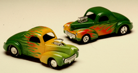 ![]() Green Willys ![]() Fat Fendered 40's ![]() Car on Stand ![]() Cutouts ![]() Handpainting ![]() Tail Draggers ![]() Highlight Flames ![]() 4 Willys ![]() Dutch and Roth |