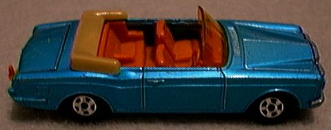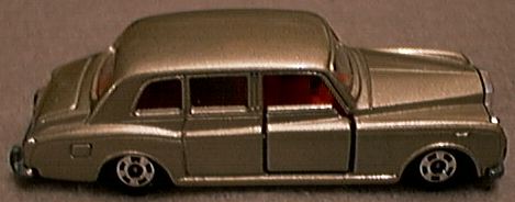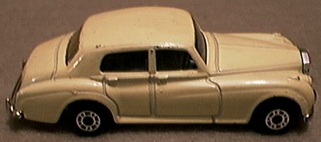 radiator design to differentiate the identities of the two separate makes. Matchbox has been prolific with Rolls-Royce models since the Lesney beginning. The Matchbox 1-75 range has also offered the following models in various paint schemes. The fist Lesney issue was #44A, a Silver Cloud sedan measuring 2 5/8 inches in 1958, which was produced until 1964. It was originally issued with gray wheels and had no moving parts or any window glazing included. The color was a light metallic blue. It was replaced by #44B, which is a 2 7/8 inch Phantom V, and remained in production until 1967. This model had clear windows and black plastic wheels. It came in both a metallic gray or metallic pinkish tan. The trunk lid did open on this model. The next model, #24C, was issued in 1967. It was a Silver Shadow, measured 3 inches in length, and was painted a metallic red in color. It was originally issued with black wheels, but changed to superfast wheels in 1970. This model, #24 D, remained in production until 1973. The trunk lid also opened on this model. The Silver Shadow Coupe (convertible) #69C was issued in 1969 and remained in production until 1973. It also was 3 inches in length and was painted either blue, lime gold, or metallic gold during its production run. The trunk lid also opened on this model. In 1979 Matchbox issued model #39E, a Silver Shadow II that measured 3 1/16 inches. It was produced until 1983. Features included either a metallic silver gray or metallic red body. Model #62F (31-I ROW-Rest of the World), a Silver Cloud 4 door sedan, represented a 1955 vehicle. It was issued in various colors for 1986-1989. This casting was also included as a James Bond model in silver, plus it was also issued in the World Class II (enhanced) series as #9 in the early 90's. This latter model had golden metallic paint with silver chromed windows. The most recent Rolls from MB is #55-H1/66F (ROW) and is a Silver Shadow. It was first issued in 1987 for ROW and 1990 in the US. It had a metallic maroon or bronze color with opening front doors on a 4 door sedan during its production run. Finally, Matchbox UK issued a model of the fictitious "Thunderbirds" TV program FAB 1, owned by crime fighter Lady Penelope in the early 90's. The model is a highly stylized body with 6 wheels. There are 4 in the front and 2 in the back. The Rolls-Royce radiator slants forward. The clear dome roof covers a pink 2 door body that has a center seat in the front for the driver. Hot Wheels first issued a Silver Cloud sedan, #6276, in which the hood opened, in 1969. This Red Line model was issued in 10 various colors. Mattel later issued a 1930 Phantom II roadster with removable top in 1984. I note that this model has left hand steering and suggest it could possibly be considered an American Rolls. Further research is suggested. Edocar, of the Netherlands, in the late 90's issued a 1986 4 door sedan carrying model #5. Although it appears that this firm either copies or uses Maisto castings, I have never seen a Rolls made by Maisto in 1/64 scale or 3 inch length. This model is silver with a black base and both front doors open. Edocar no longer offers this model in their catalog for 2000. Ertl, of Dyersville, IA, issued 2 Silver Shadow sedans. The first appeared in 1977 in the International Cars set #1701 and the Replica series #1895. It was a blue Silver Shadow with a hood that opened from the back revealing the engine compartment. This casting resembles one that was used later on the white 1982 Cannonball Run movie series model #1865, but the hood no longer opens and the roofline has been lowered. In 1966 the Underwood Engineering firm of New Zealand issues a black Rolls Phantom V under the trade name of Fun Ho Midgets #33. This model originally was issue without window glazing. It has recently been reproduced with glazing and enhanced painting of head and taillights by the Fun Ho National Toy Museum. The Hong Kong section lists generic products. Some were only identified when inside their original blister packs. Others gave no clue as to who or what toy company made them. In this group is a 3 inch green 1907 #6101 touring car copied from the Matchbox/Lledo design, but is a little bit larger in size. There are 2 additional models that also are only identified by model number. Number 4 is a yellow plastic Silver Cloud sedan and #414 is a golden diecast Phantom V or VI model which shows some similarity to the production style of Summer models summarized below. The radiator/grille is black plastic. International Hobby Corp of Philadelphia, PA issued a somewhat crude model of the 1906 Silver Ghost model #302 in metallic maroon. This manufacturer is not identified on the casting, but this model is pictured in the above firm's catalog. The model has large fat wheels with gold spokes. The wheels resemble the superfast wheels of Matchbox. They definitely do not enhance this vehicle's appearance. International Hobby concentrates largely on model train production and these cars are offered to the model train enthusiast for platform display. Laramie, a toy producer and distributor from the Philadelphia, PA area produced a 2 door convertible in their Richie Rich cartoon series and is identified on the blister card as an Old time Car. The model is of a late 30's 2 door convertible with spare tires in the front fenders. The tope is down. The body is bright yellow with a black interior and tonneau cover. The Lone Stare Impy Roadmaster #22 Silver Cloud III convertible was made by DCMT of England in 1966-1968. The early models had jewel inset headlights and the hood opened halfway from both sides. It was issued in silver but later the color was changed to red and the hood was sealed. The interesting feature of this car is the dual oval slanted headlights in place on each side of the radiator grill. Majorette of France has issued only one model of a Rolls-Royce. This is a 1991 Corniche convertible model #1006. It is composed of a maroon plastic