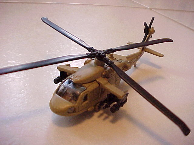 MH-60K Nighthawk helicopter (small scale) Bulldozer Digger Cement mixer Truck with transport trailer 1/4-ton cargo vehicle (altered Hummer-like ATV) Dodge RAM Patrol Motorcycle UH-60A Blackhawk helicopter (Tailwinds collection) |