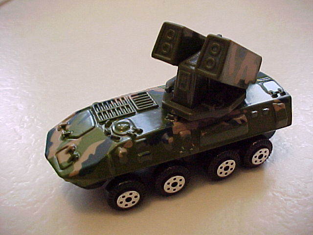 MAISTO Commando Hum-V (Humvee) Ford GP M-923 A1 5-ton cargo truck with spare hoist assy. M-923 A1 Military pumper M-1 Abrams battle tank M-3 Bradley Infantry Fighting vehicle Ford 4X4 Flareside 1980's pickup AH-64A Apache helicopter (Tailwinds collection) |