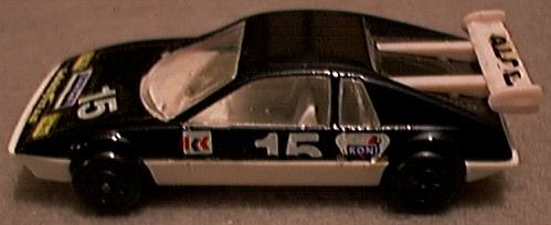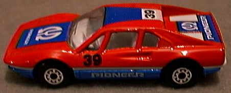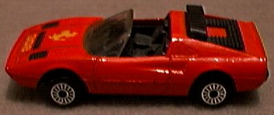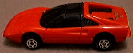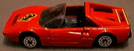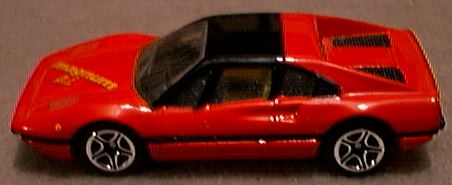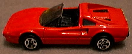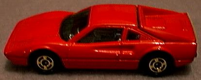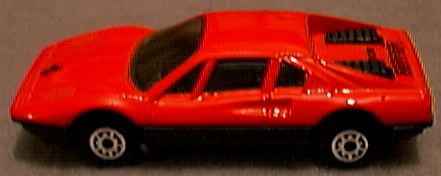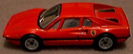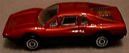 it receives. While the 308 GTS (spider) or GTB (berlinetta) may not be the best Ferrari ever produced, no one can refute it is one of the most beautiful. The design came from Pininfarina, as most Ferrari designs do, but the 308 GTB/GTS is one of those landmark cars that simply looks perfect. While some might prefer the 250 GTO or the Dino 246, the 308 GTB/GTS has become the quintessential sports car of the 1980's and still one of the most desired cars on the planet. First produced in 1975 in fiberglass, the 308 became the 328 in the late 1980's with revised bodywork and mechanicals. The popularity of the 308 GTB/GTS was not lost on toy car producers. Most of the major diecast houses did a 308 GTB or GTS model and some did both. It is possible that after doing a GTB model, the success of Magnum P.I. motivated manufacturers to add a GTS as well. Hot Wheels was quick to offer the 308 GTB in 1977. This model still appears on occasion with yet another paint color. I have it in green, blue, silver, bronze, yellow and several versions of red, including one with a plastic body. When Hot Wheels bought Corgi in the 1990's, a number of Corgi castings were re-released with Hot Wheels' bases and wheels. Corgi's excellent GTS casting looks better with the 5-spoke HW wheels, quite close in fact to the Cromadora wheels offered on the real car. Corgi also released a Magnum P.I. version. Matchbox was also an early producer of the 308 GTB. The original issue is in red and was made in Britain. A version in Pioneer racing colors came later and the model was one of the original World Class offerings. Matchbox added new wheels, and painted the car to make it appear to be a GTS for their Magnum P.I. Star Cars series. The result is marginal at best, although the original casting is quite nice. Zylmex also did both a GTB and GTS version of the 308 with the GTS in possible 328 bodywork. Tomica did a fine 308 GTB with opening engine compartment and a view of the 4-cam Ferrari motor. While the opening engine bay is nice for detail, it does detract from the overall appearance on Tomica's 1:66 scale casting. As with most Tomicas, a variety of colors have been produced over the years. Yat Ming still offers a 308 GTB in their budget line which may actually be a 328. Maisto also continues to offer their 308 GTB, with what appears to be a very close copy of the Matchbox casting. Kidco produced several versions of their 308 GTS. The stock model, shown in yellow, offers excessive graphics but a decent profile. A plastic-bodied Magnum P.I. version was also offered but without an interior and with a key-operated, spring-action motor. The 308 GTS attributed to Welly is not labeled as such but appears to be a Welly product. While quite similar in appearance to the Kidco casting, it is actually quite different with opening doors. In comparing the Kidco, Zylmex and Welly castings, the Welly turns out to be the best. The oddest 308 model is by Galgo of Argentina. While the base does not identify this as a 308, the Ferrari lines are clear. The top is crude and this could be a Dino 308 GT/4 as it shows two small rear seats. Both the GT/4 and GTB models were raced but the body is not quite right for either. No other GT/4 models exist in 1:64 scale. |