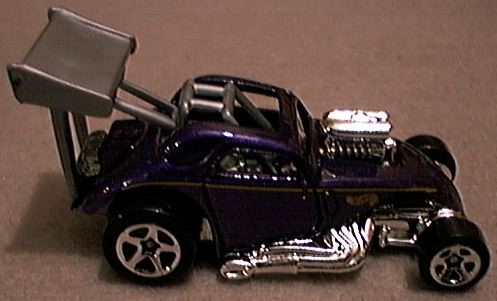 micro-racers shown here? The VW Beetle and Mini Cooper are ready to run the rally course while the Fiat, Isetta and Metropolitan are diminutive drag racers. Let's check the grid. The VW Beetle is a split-window (pre-1960) with a Baja-style air box and off-road clearance. This casting has been around quite a while but it's too much fun to retire. The Baja Bug is no flight of fancy either as many just like it have run in off-road racing and rallying for years. The Mini Cooper is the hot version of the famous Mini first offered in 1959. Mini Coopers were very competitive in rallying and were raced with much success in Europe and the U.K. Hot Wheels has offered a delightful twist on this model in that the body may be removed to view the racing chassis and roll cage, engine and interior. The front-engine, FWD on the Mini Cooper is a nice contrast to the rear-engine, RWD on the VW. Anyone want to make a guess as to which would win in a head-to-head contest? Offered in the 2000 series cars, the Mini-Cooper is an immediate hit. The Metrorail is based on a real cars as well. The original metropolitan was built in England by Austin and badged as an Austin, a Nash or a Hudson. The Nash/Hudson versions were sent to and sold in the U.S. from 1954 to 1961. In 1957, the Nash/Hudson names were dropped and all Mets became badged as American Motors Corporation cars. The Met's 4 cyl. Austin motor was good for about 50 HP and anything over 50 MPH was a considerable effort for motor and brakes. The blown V8 in the Metrorail would provide a lot more punch. I hope the brakes were upgraded accordingly. I owned a '61 Met in the same coral and white colors. Also a 2000 series offering from Hot Wheels, the Metrorail is winner. The three-wheeled Isetta makes the Met look almost stock. Can you imagine having that BMW V12 push you down the drag strip? The real Isetta was an Iso design that BMW produce under license in the 1950's. The front door opens on the nose and the steering wheel swings out. In the late 50's, Formula 1 drivers were provided with Isettas to commute to and from the race-track for the Spanish GP. Of course, they proceeded to race each other back to their rooms from the practice sessions. It's reported that whenever one started to get ahead, the co-passenger would release the door and treat passers-by with the unforgettable sight of the world's best drivers hanging on the the steering wheel over the front wheels. I cannot confirm that the drag-racing Isetta really exists but if it did not, it should. First offered by Hot Wheels in 1999, the Isetta is available in several colors. Italy's favorite micro car is the Topolino Fiat 500. Topolino is 'Mickey Mouse' in Italian and the 500 was the much-loved transport of thousands of Italy's race-crazy drivers. Imagine what they could have done with the version shown here. Another blown V8 powers the baby Fiat. Is this based on a real drag racer as well? What a wonderful sight it would be to see the Met, Isetta and Fiat race for pink slips. First offered by Hot Wheels in 1999, the Fiat 500 is also available in several colors. If Hot Wheels has not already considered offering these five cars as a special five-pack, shame on them. Driving these cars would be a bit on the wild side but adding them to your diecast collection is pure fun. Congratulations to Hot Wheels for producing such a delightful selection of micro-racers. Now, how about a demonic 2CV, macho Messerchmidt or a hard-charging Crossley to add to the fun? |