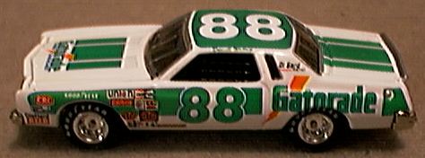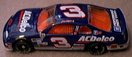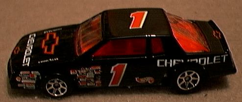 The Chevrolet Division of General Motors Corp began in 1912 under the leadership of William C. Durant and Race Driver Louis Chevrolet. The first Chevrolet had a 6 cylinder engine and was a companion to the smaller 4 cylinder Little. GM was originally founded by Durant in 1908. However, Durant lost control prior to the advent of Chevrolet. The success of Chevy enabled Durant to again take control of GM in 1915 via stock purchases. Chevrolet has continued to produce lower priced cars and has been in competition with Ford Motor Co since its outset. The first major competitor was the 'Model T '. But, as the economy developed, Chevrolet started producing more costly cars. In the model year of 1970, GM introduced a sporty coupe with a classical style known as the Monte Carlo This car was a cousin to the Pontiac Grand Prix that had been introduced a year earlier. NASCAR immediately started using these cars to represent Chevrolet on the race tracks. Styling changes occurred to make this car more appealing to the consumer, but the line was discontinued by 1990 when the Lumina model was introduced . Most people thought this was the end of the Monte Carlo era. But, in 1995 Chevrolet discontinued the Lumina and replaced it with an entirely new car and gave it the old Monte Carlo name. Since its introduction, this model has undergone one major styling change in 2000. Although the NASCAR Chevrolet race cars use the Monte Carlo stock car at present, the similarity in an up close examination /comparison of non-racing to racing bodies and equipment reveals many differences. But the basic design in the small 1/64 scale in the race models does represent the design of the car that can be found in a dealers showroom. Most of the 1/64 scale models available to the collector are of the NASCAR stock cars. I do not want to review every NASCAR stock car in reference to driver, sponsor or assigned car number ever issued. Instead, I wish to provide an overview of the various castings produced by the numerous toy/ model manufacturers which will be listed in alphabetical order. The first series of MC cars was produced for 20 years. First introduced in late 1969 for the 1970 model year, the MC had a squarish shaped grill and the rear wheels were enclosed. This style experienced only minor modifications through 1972. The 1973 Chevrolet MC was styled with a colonnade pillar roof line. This consisted of small side windows to the rear of the doors which were slanted parallelograms in shape. The rear wheels were completely exposed. Vertical dual headlights were added in 1976. In 1978 a third major body style was introduced. The entire car was downsized and in 1981 horizontal dual headlights were introduced. In 1983 the SS model was given an entirely different and more radical streamlined front end. These cars were designated for NASCAR use, although some SS models were sold as road cars also. The rear window style at this time was called knotchback. In 1986 the fastback Aerocoupe rear design was introduced and remained in production until 1989. 1/64 Models Action Performance/ Racing Collectibles Club of America (RCCA) bought out the former Racing Collectibles Inc (RCI) in 1993-94. Prior to the Action takeover all models sold by RCI were made by Revell. However, RCI did not sell any MC models. It was not until after Action took over that any MC models were produced. I count 4 different castings of MC cars in the 1970-1989 era. The earliest MC by Action is a # 02 Earnhardt Wrangler car from 1982 which was issued in 1995. Another casting which was recently issued is of the # 01 M. Martin Activision 1983 car. In 1993-94 Action issued a 2 car set of Prototype MC cars . One was representative of the 83-86 knotchback coupe, while the other was of a 1987- 89 Aerocoupe. These models were issued in gray primer with the # 93 printed on the sides. These castings were used for subsequent issues of race cars driven by Earnhardt and others during that time period. Ertl issued an Aerocoupe model of the Tim Richmond Folgers #25 car over 10 years ago. This model was used as a promotional for the sponsor. Hasbro/ Winners Circle has a partnership arrangement with Action to use their lower price castings for distribution in mass market discount stores. A # 3 Earnhardt Wrangler in the pre- 86 knotchback style was produced. the base identifies the model as Hasbro and gives no indication of the Action connection noted above. Hot Wheels/ Mattel has produced numerous MC models. The 1970 model was issued last year in their more detailed Collectibles line as a 'Lowrider', which has a wild tampo design plus adjustable axles to raise or lower the body. This casting is a very good representation of the full size car. Also the Monte Carlo Stocker # 7660 issued in 1975 and the Lowdown # 9185 issued in 1976 (same casting) represent a 1973-75 colonnade pillar designed model. The Chevy Stocker #1791 issued in 1989 is an Aerocoupe model. It carries # 3 on the sides, but no driver's name is shown on the roof. Recently this casting was noticeably modified. There are detail lines for the engine hood , trunk and doors (however stock cars do not have doors) and the wheel wells are bowed outward to allow for a wider tire size. This model carries # 1 and the sponsor name is Huffman. Johnny Lightning/ Playing Mantis produced a 79-80 # 88 Gatorade car in their Stock Car Legends set issued in 1988. Later a 1984 knotchback # 24 Hardees car was also made available in this same series. In 1997 JL issued a 1987 'Beastmobile ' in their Hot Rod series. This model had a large chrome blower protruding from the engine hood. Racing Champions issued a 1980 # 43 car in their 50th Anniversary Petty series in 1999. RC also issued a 1988-89 # 3 Earnhardt Aerocoupe in the early 90s . Revell-Monogram issued a 1979 Petty # 43 car in a soap promotional, which was limited in availability only to the southeastern US area, about 4 years ago. This offer only existed for a short duration unfo
