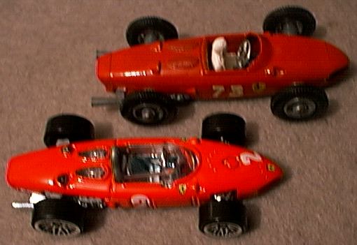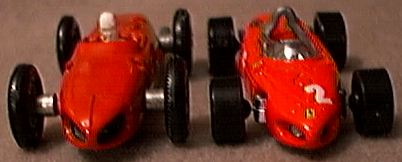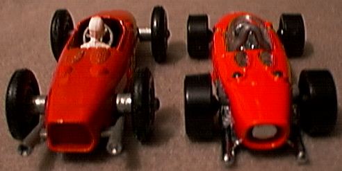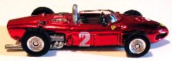 ![]() Hot Wheels has released for 2001, the Ferrari 156 F1 car that Phil Hill drove to a World Championship in 1961. Some 40 years back, Matchbox offered the same model. A detailed comparison of the two is not necessary as both have their strengths and faults. Many consider this the most beautiful F1 car of all time and it is a pleasure to have both for our collections. You make the comparison. The following text and image above are courtesy of (link). Ferrari joined the rear-engine revolution with the Ferrari 156 "Sharknose". Designed by new engineer Carlo Chiti. The chassis was a tubular spaceframe that while not in the same league with designs created by Lotus and BRM it proved serviceable. The star of this car was the 120 degrees V6 engine that was a developed for the new regulations. The angle of the cylinder blocks allowed for the engine to have a lower center of gravity. Because the engine was substantially wider its rear placement was deemed necessary. Another striking feature of the new engine was its relative light weight, weighing 30 lbs. lighter than the four-cylinder Coventry-Climax engine still being used by the British teams. |
