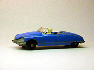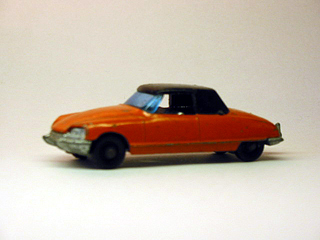 with its smooth running wheels and light body. The convertible has not been done by any maker in around 1/64. The somewhat smaller 1/86 diecast Lonestar "Tuf-Tots" included a third nose DS convertible with driver and a covered convertible without. (These cars are not mentioned in the list as they are smaller then the rest of the castings). ![]() Norev - DS21 The other famous French firm of Norev produced a nice DS21 model that is quite rare today. The model is very simple like the other early mini-jet models. (Doug a connection to the Norev page can be made) The base and the interior are one casting. The only luxuriousness are the opening front doors. Polistil of Italy had two DS models. A good lined one and a fantasy example that looked like it had come from a cartoon. Zylmex made a DS19 coupe model that is very poor in lines and quality.