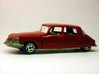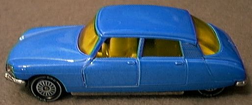 As promised in the Citroen History in the September issue of 'Tales of toy cars', here is the story of a beautiful car. In 1955 one of the most sensational cars ever was introduced. It was the Citroen DS19. This car had an aerodynamic body like a spacecraft. The technical features stunned everyone. It had self-leveling hydropneumatic suspension. A hydraulic system powered the disk brakes, the steering and a semi-automatic gearbox. Remember this is 1955 and people still had to get used to electric razors. But the DS19 was over-complicated and expensive so in 1957 a cheaper and technically less complicated car was introduced, the ID19. It had the DS body and suspension while the rest of the techniques where conventional. In 1958 the Break (station wagon) was introduced on the base of the ID. Citroen got this idea by looking closely at the Chevy 57 Nomad. If the DS already expensive, the DS convertible, build from 1961, was even more pricey. It cost twice that of the most expensive DS. Not many were sold and the cars are rare. Today they are still the most expensive cars from the Citroen D-series and at price that is easily four times that of a DS. A minor facelift came in 1963 that did not change the line of the body much. In 1967 however, a more drastic change was introduced that led to an even more shark-like body. It was the year that the four headlights where placed behind a streamlined glass cover. The American cars did not have these glass covers because the law did not allow that, so the four lights where placed in a streamlined base that had the same shape as the European glass covers. (The disappearance of the glass cover was also visible on the Jaguar E-type and Alfa Romeo spiders) The's 1900cc engine moved up to 2347cc for the DS23 in the early 70s. The car was then capable of doing 118 mph, fitting the DS style and image. The only point of criticism was now solved by the 23 because the power of the car had been previously considered insufficient. In 1974 the CX was introduced and it had the tough job of replacing the DS. After 20 years the end was near. In 1975 the last DS models where build, (with exception of the really last DS, a convertible made out of new spare parts in 1978 on a 1973 base). It was still a modern car because the body was still exceptional and the techniques where updated regularly. DS's have been build in large numbers in France, Belgium and England (LHD). There have also been some assembled in South Africa and Australia. In total there have been close to 1.5 million cars build and that is an exceptional amount for such a big and expensive car. It was popular all over the world even in the difficult American market (some 20.000 were shipped across the Atlantic). But in France, the car was really popular. Of those 1.5 million build, 1.3 million were sold in France. It is the most Gallic car ever seen on the roads and that stands today. From such a excellent car there must be some models and in fact some