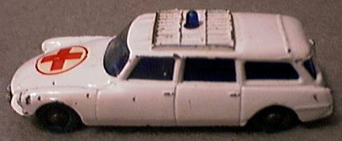 A Husky model is also one from the early DS. This break had been available as a wagon with a boat on top and as an ambulance in civil and military versions. Later this car became available as a Corgi Junior, in a larger version. The later DS can be seen on the already mentioned JL example and on the