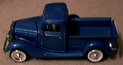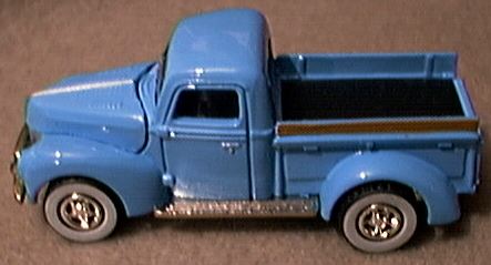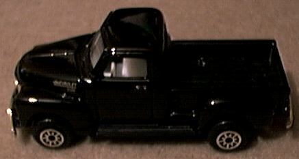 | ANSON/ TIGER WHEELS is the most recent producer of a p/up truck. Their model is of a 58 Chevy Apache # 90040 . The most notable feature is the heavy all metal casting.The reason for the weight is to provide weight when these toys are raced on a gravity track. The models/ toys are imported through Puerto Rico where racing small scale vehicles has become a hobby and pastime for many of the residents on the island. | ![]() |