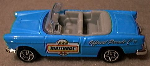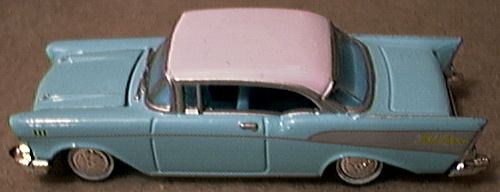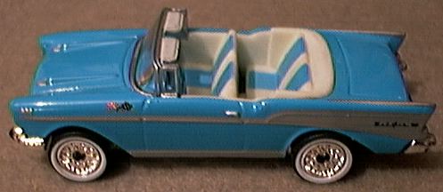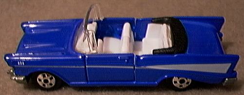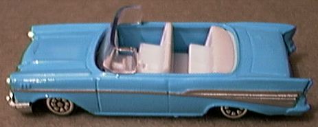 Corgi produced a 57 convertible ( top down), model # 152-A1. These models recognized the long discontinued TV detective show Simon & Simon. The model was painted black and white but did not represent the normal two tone paint scheme of the full size cars.