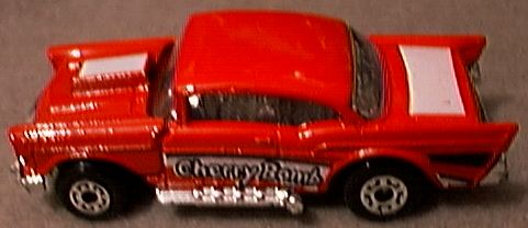 Ideal Toys produced a 57 HT in 1982. It featured a noticeably raised rear end which could be representative of a drag racer. Johnny Lightning (JL) is no doubt the most prolific producer of