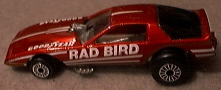 generation was 'KITT' of the TV show 'Knight Rider'. Many of the diecast toy car makers added the Firebird for the 1980's to their line-up. The following is a review of these models. ![]() 1982 Knight Rider - Universal Corgi offered the 1982 Firebird in their Corgi Juniors line. This casting was also used for a line of models featuring the teams of Major League Baseball. Ertl introduced a 1982 model in their 1:64 scale series. It is a very nice casting and features a 'T' top roof style, a popular option at the time. Hot Wheels provided two versions of the 3rd generation Firebird. The first was a stock model with open 'T' tops. The second was a wild pro-stock drag-racer, shown here from the California Customs series. Maisto produced a close copy of the Matchbox Firebird. This is one of the earliest Maisto castings and while it is a copy, it is well done. Maisto copies many of the Matchbox models of the 1980's including the Porsche 911 Turbo and 959 models. Most of these copies are as good as the originals! Majorette also offered two different variations on the Firebird. The first is the stock Trans Am model, complete with opening hood. The over-sized wheels used on some models did not improve the look. The second model was the same casting but with a huge V8 stuffed in the engine bay. Matchbox did a very nice stock '82 Firebird as one of the last of the Lesney castings. A second Trans Am series racer was also issued in various racing colors. The STP version is my favorite. Recently, Matchbox used the stock casting for their 'Knight Rider' version in the Star Cars series. Road Champs also did a racing version of the '82 Firebird. It features opening doors. The Road Champ models of the 1980's are well-made with diecast bodies and bases. many have opening features. Universal Studios produced the Knight Rider TV show and a diecast version of 'KITT' was offered as a promotional item (shown above). It is not clear who actually produced the casting for Universal. Welly produced an '82 Firebird with the obligatory 'flying chicken' on the hood. It also has opening doors. Yat Ming offered their '82 Firebird in a budget version with smoked windows. Curiously, they also re-used the same tampos first seen on their 2nd generation Firebird model. Zylmex wins the prize for the most versions of the 3rd generation Firebird. First, they did a stock version of the Firebird Trans Am. The then offered a completely new casting of the convertible model in their Pacesetters line. A third model in pro-stock form with opening doors and hood scoop was also produced. The last casting is a funny car called the 'Rad Bird' and features lift-up body work. Next month we will look at the fourth, and it appears last generation of Pontiac Firebird models. |