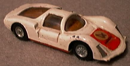 highly collectible and quite valuable today. Like many 1:43 scale diecast producers, Mercury was impressed with the success of Matchbox in the 1960's and decided to offer their own 3-inch line. Like Dinky's Mini-Dinky models and Polistil's Penny Cars, Mercury gave their junior line a special name. In keeping with the Mercury theme, they called their 1:64 scale line 'Speedy'. Most if not all Speedy models were based on larger Mercury castings. Many collectors today have never seen a Speedy model. Only 18 castings were actually produced and few were sold outside of Europe. These models seldom appear at toy shows and can command prices of $20-30 in decent condition. The quality of the paint on many Speedy models has not survived well over the past 30 years and finding perfect examples is almost a lost cause. As I only have one Speedy model in my collection (Porsche Carrera 6 #801), it is with the generous assistance of several other collectors that the accompanying images are presented. Mac Ragan, noted diecast author and enthusiast provided the four images to the left. Mark Foster provided the Osi Silver Fox and David Cook sent the image of the Chaparral. Thanks guys. Like the Mini-Dinky and Penny Car lines, Speedy models were only produced for several years, contributing to their rarity on the market today. Several models from the 18 produced may be the only examples of certain cars in 1:64 scale. The Ferrari 250LM is an excellent example of a wonderful Le Mans winning car, not done by other small-scale manufacturers. This model is quite high on my 'seeking' list. The Matra Djet may also be a unique model in 1:64 scale. While it's too bad that the Speedy line did not last longer, it makes these rare models all the more interesting when found. If anyone can send an image of the models not shown, I would be happy to post them in a future issue. |