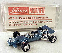 ![]() Schuco - Matra-Ford F-1 1969 ![]() Schuco - Tyrrell-Ford 1971 ![]() Champion - Tyrrell-Ford 1971-73 ![]() Champion - Tyrrell-Ford 1971-73 ![]() Polistil - Tyrrell-Ford 1974 |