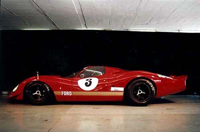 One curious Ford from this period is represented by the Matchbox Ford Group 6 model, #45. The real car was actually the Ford F3L, also known as the P68 and was developed by the Alan Mann Racing Team for the 1968 FIA World Sports car Championship. The F3L was entered into the prototype class, for which engine capacity was limited to 3 liters. Thus the F3L was powered by the popular Ford Cosworth DFV grand prix engine. At the same time that the F3L arrived on the scene, Ford's interest in international sports car racing was on the decline. And with the continued success of the GT40 in 1968 and 1969, the F3L never got a fair crack at becoming the legend that its sister, the GT40, is today. Only three F3L's remain today, one of which is occasionally raced in the International Sports Prototype series for vintage cars that originally competed during the years from 1963 to 1970. | ![]() Ford F3L on which the Matchbox ford Group 6 model is based |