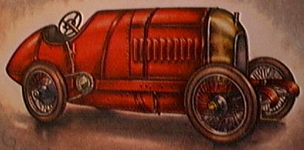 Torpedo JonesPossibly a 1911 Fiat 300 CV Grand Prix racer The Fiat 300 CV was 28.2 litre, 4 cylinder grand prix racer. It produced 300 h.p. and had a maximum speed of 135 mph. Considering the primitive brakes, steering, tires and suspension, anything over 80 mph would have been amazing. The addition of a driver add much to this model. Unfortunately, the low-profile tires are particular out of place. Even the wheels from 'Old #3 would be a major improvement. |