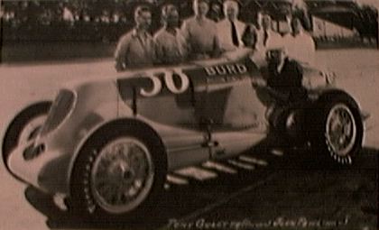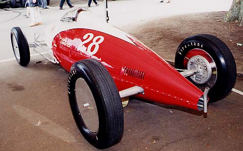 Rocket Oil SpecialPossible a 1934 Indy car - Sampson Radio Special The roadster body and V16 motor in this model are clues to it's inspiration. In the mid-1930's, several V16 powered cars ran at Indy. One with a Miller V16 was the Sampson Radio Special, driven by Chet Gardiner in 1934 (picture is a similar V8 powered car). it started 5th but finished in 21st place, averaging 114.786 mph. With 201 c.i., the Miller V16 was surpassed by the Cooper V16 of 330 c.i., although the Superior Trailer car it powered finished in 25th place. The aerodynamic side pods are a curious touch, not seen on most period Indy cars. |