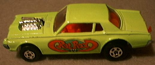 Matchbox issued their first model in 1968 of a 1967 Hardtop #62-C. It first appeared in the Regular Wheels line and then became a Superfast model in 1969. A modified version called the "Rat Rod" was issued in 1970 #62-D. The open engine compartment contained an oversize powerplant that protruded upwards. The rear end was noticeably raised to present the model as a Hot Rod! It remained in the 1-75 line until 1974. Also issued by Matchbox in 1978 was a Cougar Villager Station Wagon model #74-E . It had a hinged rear drop type tailgate.
