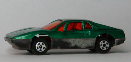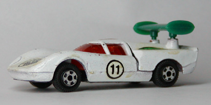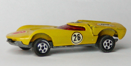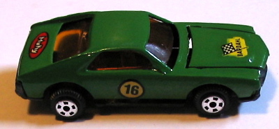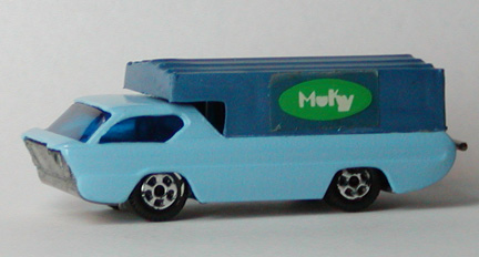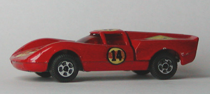 #1-7 (unknown) #8 Lola GT Spoiler #9 Ford MK IV Turbo (also called MK N Turbo, similar to #18 w/ spoiler) #10 Ford GT 40 Turbo (similar to #20 w/spoiler) #11 Chevelle SS (based on Hot Wheels Custom AMX) #12 Lincoln Continental #13 Arenero MUKY (based on Hot Wheels Deora) #14 Lola GT 40 #15 Dodge Charger #16 Corvette Special #17 Casa Rodante MUKY (camper based on Hot Wheels Deora) #18 Ford MK IV #19 "Mac Laren" M.G.A. Turbo (similar to #34 w/ spoiler) #20 Ford GT 40 #21 Cadillac Eldorado #22 Lamborghini Special (based on Hot Wheels Torero) #23 Cisterna MUKY (P/up with cap based on Hot Wheels Deora) #24 Policia (68 Plymouth Fury) #25 Camion Jaula (stake bodied P/up based on Hot Wheels Deora) #26 Super Turbo #27 Furgon MUKY (van bodied P/up based on Hot Wheels Deora) #28 Chapparal 2 G #29 Skoda Baby (pipe loaded P/up based on Hot Wheels Deora) #30 Ford Coupe 36 (with hinged rumbleseat) #31 Volcador MUKY (dump truck based on Hot Wheels Deora) #32 Lancia 3000 (Super Turbo w/ spoiler) #33 Rapit Urbano (similar to #27) #34 "Mc Laren" MGA #35 Bomberos ( #24 fire chief car) #36 Servicio Medico (#24 paramedic car) #37 Taximetro (#24 taxi) Additional models have appeared that are not part of the above "collection of the thirty". They are: #38? (unknown) #39? Ferrari 308 #40? VW (Beetle) #41? Ford 41 (coupe) |