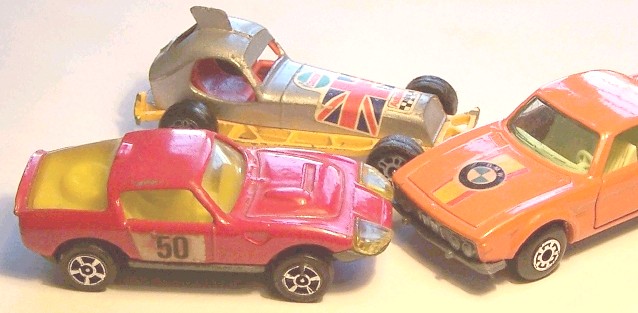 Aging stickers- MB BMW 3.0CS, Corgi Whizzwheels Austin Healey Le Mans Sprite and Corgi Whizzwheels Stock Car |