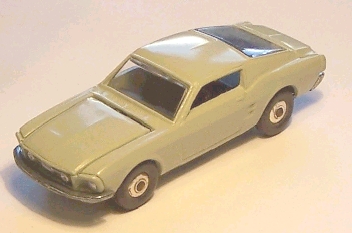 A set of repro Matchbox regular disc wheels swapped onto a repainted Hot Wheels Mustang. |