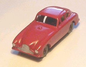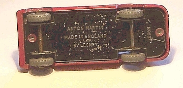 | Case Study 2: red Matchbox 53a Aston Martin DB2/4 Most of these were a pale metallic green colour but there is a much more rare red version. Is this one? A long-time collector with good information sources will be able to say straight off that it is a repaint- it's the wrong red and anyway the red version had plastic wheels, not metal ones. For a newer collector, what are the signs to tell it's a repaint? It is certainly less obvious than the Miura above. The rivets look okay- a bit dinged about but no sign of drill or tool marks. No sign of any glue either. Despite looking intact, those dings are not consistent with the perfect condition of the body paint, which gives us our first hint- is the difference in condition between the body and the base or other parts likely to have occurred naturally? In this case, I'd say no- a perfect shiny finish above, but play worn below. Another hint is the faintest sign of another paint colour on the underneath of the body- looking up under the wheel wells. With the right angle and some good light, it looks like the original green paint is still there. There are also hints of the green paint in the centre of the rivets. If I found this piece for sale, I'd be concerned as to its originality. |