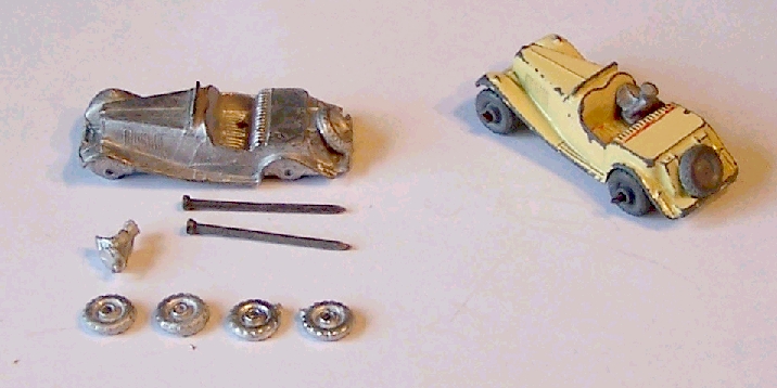 Left- not a resto, or a custom, but an entire reproduction of the early Matchbox MG (right). |