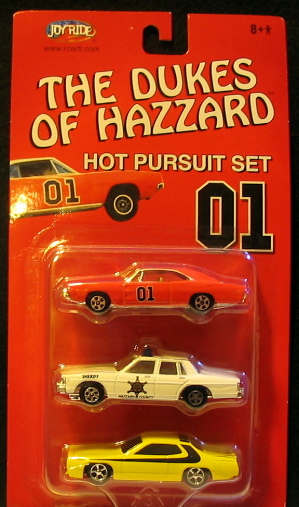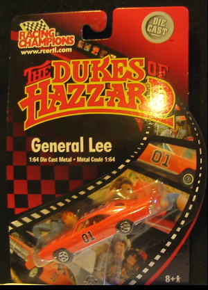 On the wave of renewed popularity for the Dukes, 1997 saw a re-release of the Ertl General Lee. The newer release is identifiable by its tan interior- original versions have black. It is a new casting with the most distinctive change in the area of the trunk lip and rear tail-lights, but it retains the delightful appearance of the original. Earlier versions of this re-casting are painted much like the original but later versions have silver detailed window trim and red tail-lights. The re-issued General Lee has come in single blisters and multi-packs with other re-issued castings of the original 'Duke's' vehicles as well as new additions, sourced from other RC castings.
