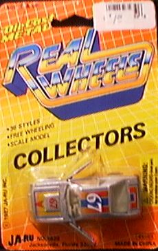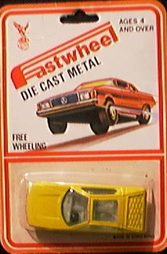 diecast books and magazines. It is time to correct that mistake. Simply assembling a list of Yat Ming models is a major effort. The list below is not complete and yet it may prove to be the best list yet. It has been compiled from the backs of blister-packs, scant references in books, partial lists done by other collectors and the bases of the cars themselves. My collection does not have all the Yat Ming models. If you can provide a missing image or model description for this page, it would be appreciated. Please send any images or details you can and I will update this page. Part 1 of this story will review the models 1001 through 1050. In several cases, variations or models with the same number exist, such as #1003. These models are identified at the bottom of the list. Most of these models have come in a variety of colors with a variety of wheels. Some castings have received revised grills like #1012 and #1015. Many have come with both plastic and metal bases although all the bodies have been done in metal. Part 2 of this story is linked below and covers models numbered 1051 to 1100. A story on other Yat Ming number series will run next month with models. Samples of Yat Ming packaging will also be shown. The top package to the right is from the 1970's and shows that the 'Fastwheel' name was associated with Yat Ming models. Real Wheels, Speeding Wheels Road Toughs and Street Machines are some of the other brand names used to market Yat Ming diecast. Yat Ming has often produced models for specific distributors